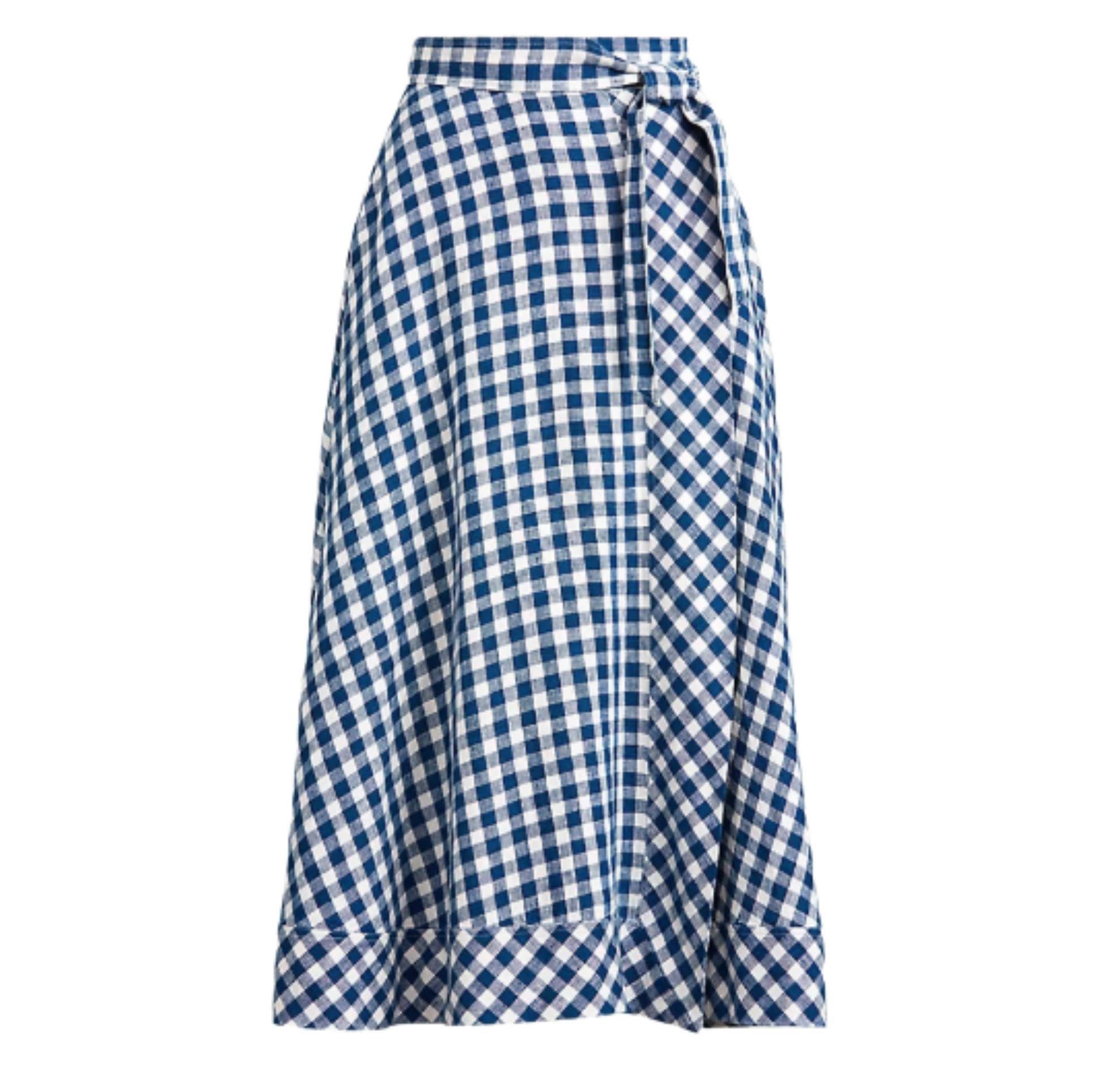 Designed with a fluid wrap silhouette, this lightweight linen skirt features a preppy gingham pattern for quintessential summertime style.