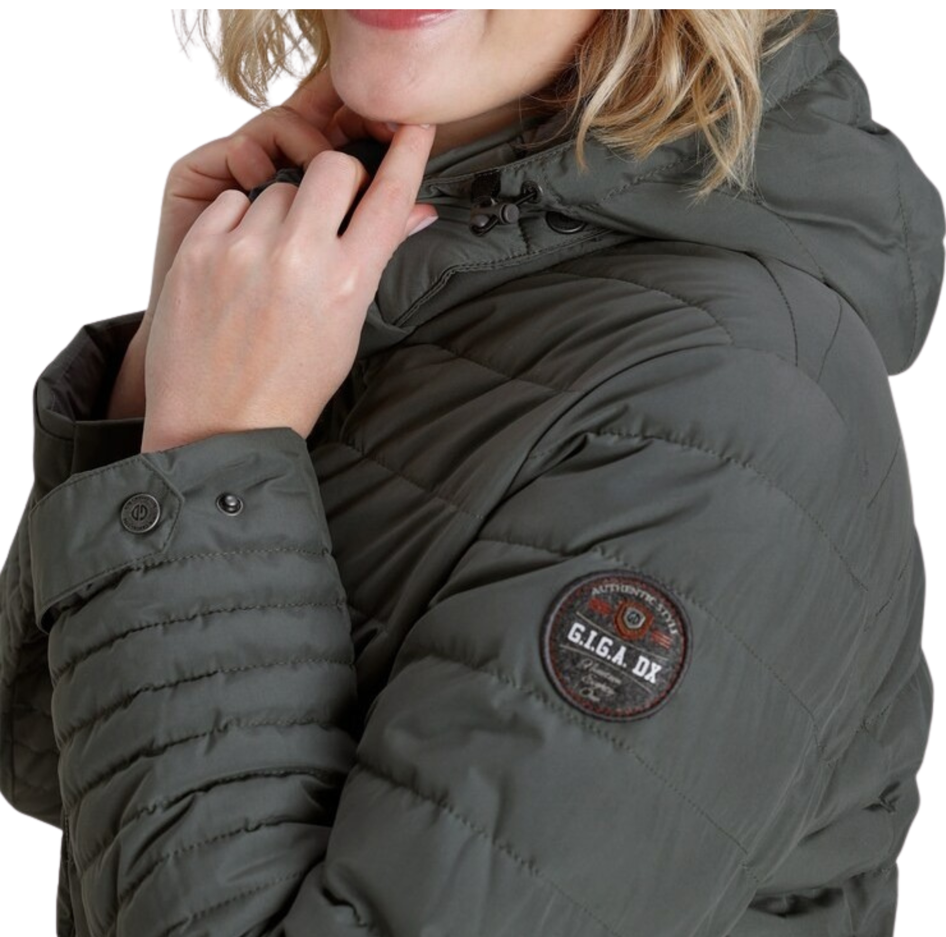 Sieviešu funkcionālā jaka izceļas ar sievišķīgu, slaidu piegriezumu un elegantu dizainu. Šī stepētā jaka ir vēja necaurlaidīga un ūdeni atgrūdoša (8 000 mm).