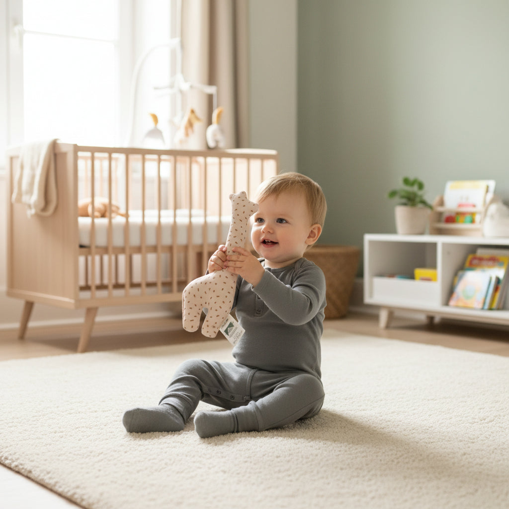 Populārā un jaukā žirafe grab un čīkst, kad jūsu mazulis to kustina. Tās garais kakls ir arī ideāli piemērots mazajiem pirkstiņiem, kas alkst kaut ko satvert. Turklāt tā ir jauka dāvana mazulim!